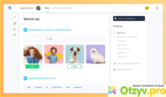 Еще, насколько знаю, они активно пользуются виртуальной доской для более показательных уроков. Отдельно создатели добавили конструктор уроков + шаблоны, чтобы быстро создать необходимые упражнения: здесь можно вставлять буквы в слова, подбирать правильные ответы, подбирать похожие слова в двух столбцах и тому подобное. На самом деле хорошая платформа, для меня, как для директора онлайн-школы, есть отдельно административный кабинет, в котором я отслеживала прогресс учеников, планы уроков учителей, расписание, нагруженность - достаточно важно, чтобы учителя не перегорели и уроки были качественными. Домашние задания наши ученики выполняют тоже на этой платформе, нам удобнее, чтобы все было в одном месте. Судя по откликам от учеников, им все нравится. Тариф адекватный по цене оказался, так что оплатили его и пользуемся сейчас без каких-либо проблем.