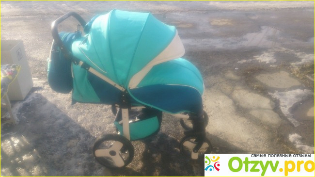 В целом же впечатления от коляски только положительные, проходимость очень хорошая, проверено по сугробам, тающему снегу, разъезженым дорогам, везде проходит на ура. Передние колеса поворотные, с возможностью фиксации, что очень хорошо для езды по снегу. Коляской очень довольна и о своем выборе не жалею.