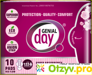Пользуюсь женскими прокладками бренда Genial Day уже на протяжении нескольких месяцев, так что могу оставить вполне объективный отзыв о качестве и комфортности использования изделия. Во-первых, производитель гарантирует впитываемость в 4 раза большую в сравнении с обычными вариантами, так что получается прилично экономить по деньгам. Во-вторых, с ними ни разу раздражений не было, хотя кожа чувствительная.