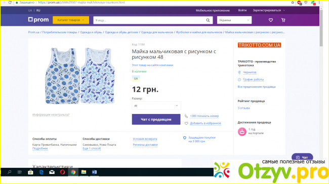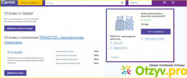 После того, как находишь нужный товар, автоматически можно перейти на сайт продавца и там уже более детально рассмотреть товар, хотя частично описание есть и на самом сайте Prom.ua.