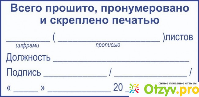 Еще есть ряд общих требований: а) Должна быть возможность снять ксерокопию с любого, имеющегося в документе листа. б) Прошивка непременно прочная. в)Количество листов должно быть указано как цифрами , так и прописью. в) Прошивка должна быть заверена подписью и печатью.