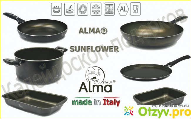 Я за все время использования, а это приличный срок, не усомнилась в правильности своей покупки, сколько я перепробовала разной посуды, но мне все не подходило, на смотришься рекламы, купишь, а она оказывается не соответствует тем порамитрам которые рекламировали по телевизору. На посуду бренда алма я наткнулась случайно, я не думала, что она окажется наслько качественной, практичной, удобной и к тому же красивой. Я не думала, что в Италии производят такую посуду, даже готовить я стала с удовольствием, а раньше мне как то это не нравилось готовить, вот пригорит раз, другой и все желание отпадает, лучше закать еду или сходить в кафе.
