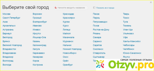 Этот же сайт будет понятен даже бабушкам, так как выставить параметры в нем и посмотреть всю нужную для вас информацию довольно просто. Когда вы попадаете на главную страницу этого сайта, то вам в начале нужно будет выставить свой город, чтобы все магазине вы просматривали именно в нем. Причем список самих городов там просто огромный, так что вы легко найдете ваш.
