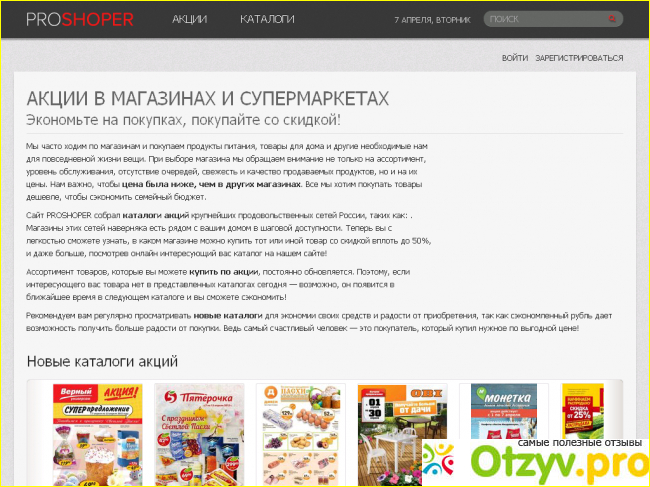 Так же для удобства нужно пройти регистрацию на нем. Тогда вы не только сможете просматривать интересующую вам информацию, но на ваш почтовый ящик будут постоянно приходить письма с новыми каталогами с разных магазинов. По этому постоянно заходить и просматривать появилась какая-то новая информация или нет вам не нужно. а вы можете просто и быстро ориентироваться по письмам на почтовый ящик.