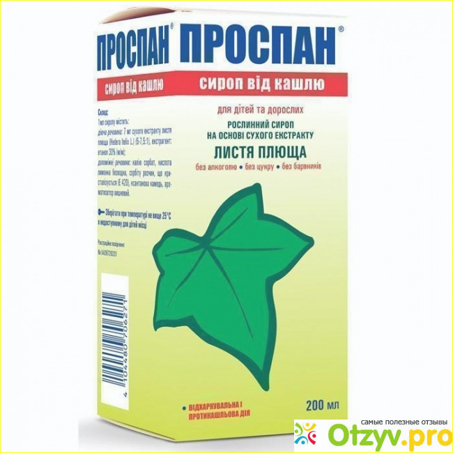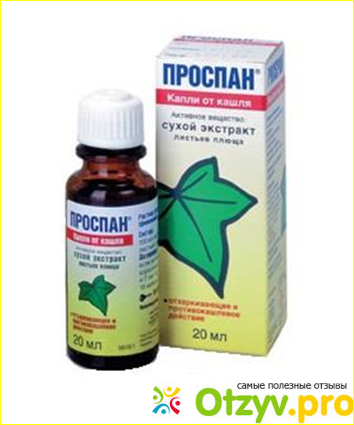 Проспан является препаратом на растительной основе, куда входит в качестве основного компонента плющ обыкновенный, точнее его вытяжка. Кроме этого в составе препарата имеется лимонная кислота, ароматизаторы, сорбит, и некоторые вспомогательные вещества. Препарат обладает муколитическим действием, то есть способствует образованию и разжижению мокроты.