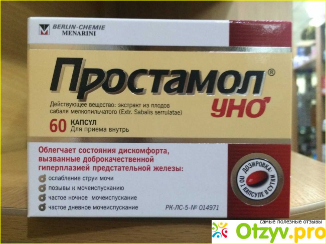 По рекомендации терапевта я приобрела препарат Простамола-Уно Берлин-Фарма. Это почти натуральное средство, состав капсул: экстракт плодов пальмы ползучей и вспомогательные вещества (глицерол, диоксид титана, желатин). Говоря по простому простатит - это опухоль в простате в результате воспаления. Капсулы простамола противодействуют развитию опухолевых клеток, то есть это в основном профилактическое средство, но они обладают еще и противоотечными и противовоспалительными свойствами. Вся эта информация была извлечена мною из инструкции к препарату.Муж принимал по одной капсуле в день в течении месяца и параллельно пил Витафон. Результат положительный. Да и анализы стали намного лучше. Вывод: препарат Простамол Уно не бесполезный, как часто бывает с разрекламированными лекарствами. Но уж очень дорогие эти капсулы, упаковка (30 капсул) стоит 750 рублей. Мы купили две упаковки за 1350 рублей. Для профилактики муж через месяц повторил курс лечения. Разумеется мне не жалко денег, главное здоровье моего благоверного.