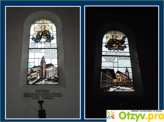 Она стоит на месте бывшей церкви Св. Николая, где 24 декабря 1818 года впервые прозвучала знаменитая позже песня.