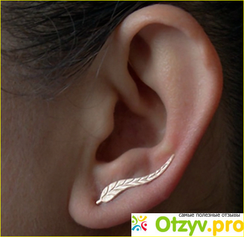 По форме серьги похожи на пёрышко или чем-то на длинный лист. Они повторяют изгибы вашего уха.
