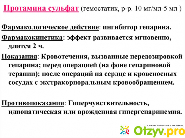 Вот тогда я нашла, что Протамина сульфат применяется в таких ситуациях: