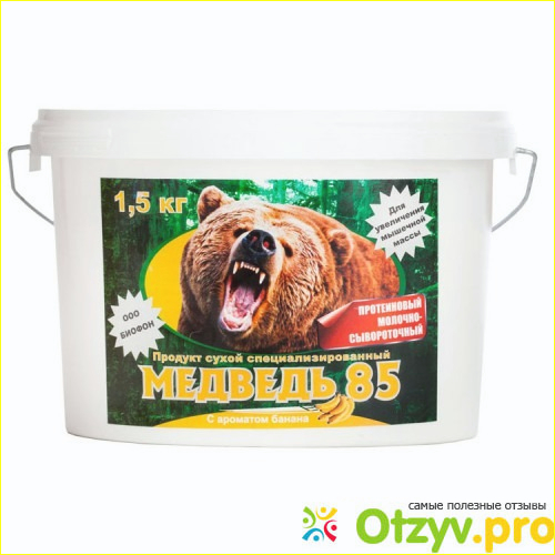 Получается, что нам нужна была такая протеиновая добавка, которая сможет точно гарантировать мужу прирост мышечной массы. Тренер посоветовал на выбор несколько, и мы выбрали Медведь 85. О нем я и хочу рассказать в своем отзыве.