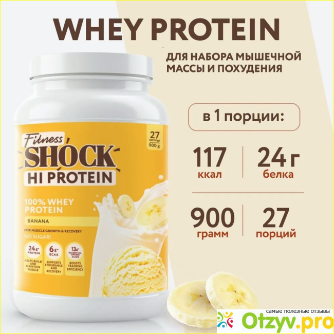 Всем привет! Я пробовала много разных протеинов, и могу сказать, что Fitnesshock Whey Protein со вкусом банана меня приятно удивил. Первое, на что я обратила внимание - это вкус. Он не химозный, как у некоторых брендов, а скорее напоминает банановое мороженое или коктейль из детства.