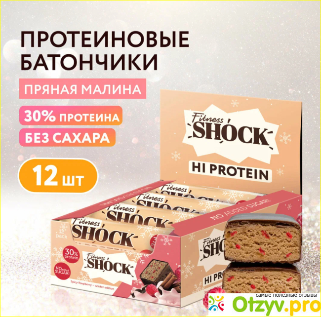 Недавно увидела на маркетплейсе новую зимнюю коллекцию протеиновых батончиков от Fitness Shock. Мне стало интересно их попробовать, тем более я уже была знакома с этой фирмой и все десерты мне понравились. Заказала себе упаковочку с протеиновыми батончиками "Пряная малина".
