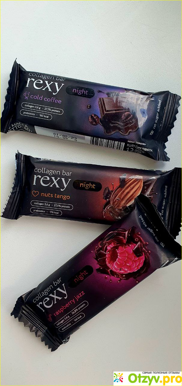 Первые которые я попробовала это Rexy night. Это обалденно вкусный коллагеновый десерт, абсолютно без сахара. В составе много белка, пищевые волокна, витамин С , низкое содержание углеводов. Очень питательный и вкусный батончик в шоколадной глазури. Идеален для перекуса, чувство сытости долго сохраняется. В одном батончике дневная норма коллагена. Для здоровья кожи, волос, ногтей идеально просто.