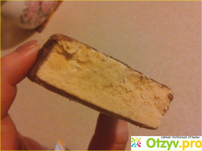 Сверху батончик покрыт шоколадной глазурью, внутри консистенция рыхлая, чем-то напоминает халву. Батончик сладкий, но его вкус очень своеобразный, какой-то терпкий и непонятный, сухой. Я его есть не смогла, не приятно. А вот муж сказал, что своеобразно, но есть можно.