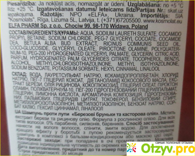 Изготовлен шампунь в Киеве (Украина) на фармацевтической фабрике «НПО «Эльфа».