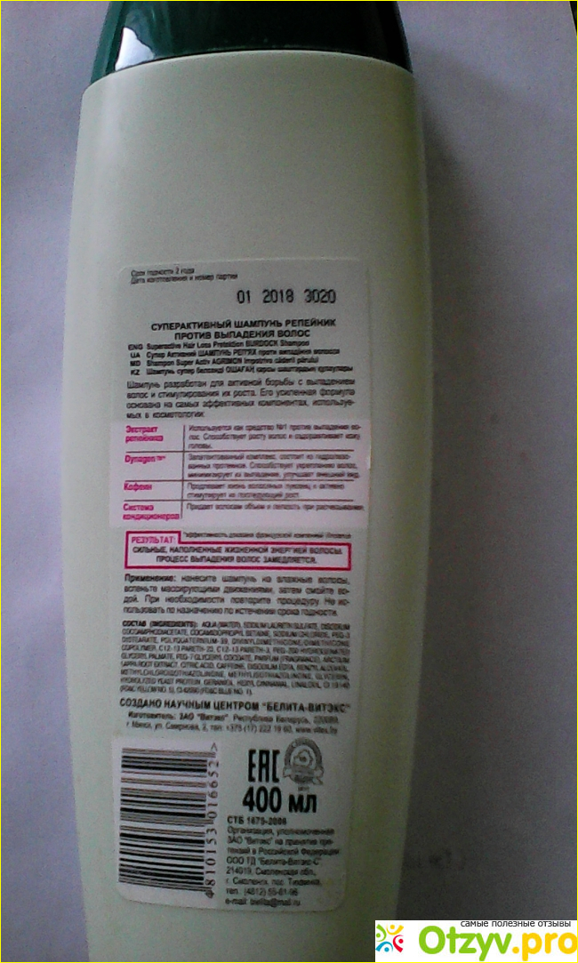 С удовольствием представляю вам отличный шампунь против выпадения волос "Репейник"! Он произведён прославленным, известным НАУЧНЫМ ЦЕНТРОМ "Белита- Витекс" (Беларуссия).