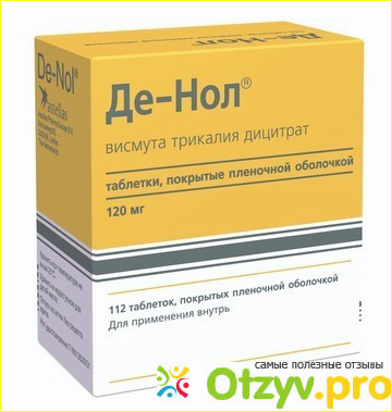 Де-нол представляет собой препарат противоязвенный, который обладает вяжущими свойствами, оказывает гастроцитопротекторное действие, но еще и является хорошим противомикробным средством по отношению к такой бактерии, как пилори хеликобактер. В рекламе можно о такой бактерии услышать часто и именно она провоцирует развитие язвы. Действующим компонентом в препарате является субцитрат висмута, так как он позволяет оказывать необходимое действие на работу всех органов, которые подверглись язвенной болезни.
