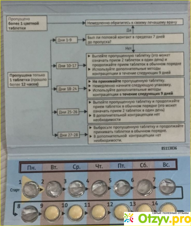 - при правильном приеме препарата более чем на 99% эффективна, но пропуски приема таблеток, рвота, диарея и прием некоторых других лекарств могут сделать ее менее эффективной.