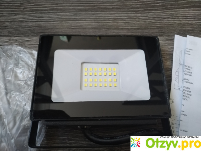 В комплекте с прожектором идет картонная упаковка и небольшая инструкция по эксплуатации.