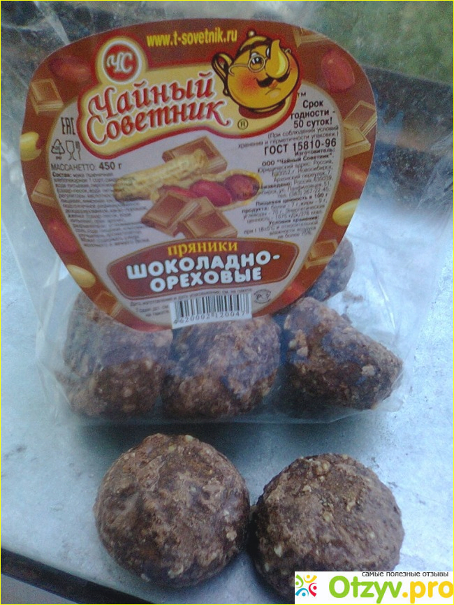 Пряники Чайный советник "Шоколадно-ореховые" имеют стандартную, круглую форму. Оттенок у них насыщенный - шоколадный, это из-за содержания в них какао-порошка. В пачке пряники очень симпатично выглядят, также в пачке не было мною обнаружено сломанных пряников и крошек. Очень красиво выглядят пряники, такие можно и гостям подать на чаепитие.