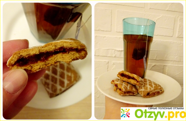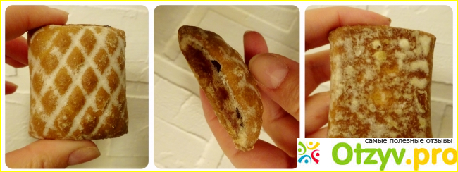 Пряников в упаковке не так много, как я привыкла. Да и форма у них необычная, они прямоугольные и почти плоские. Сверху у них нанесён геометрический рисунок (ромбиком) и светлая глазурь, характерная для этой сладости. Внутри пряников находится ягодная начинка с густой консистенцией, её много и она не вытекает. Пряники имеют приятный пряничный, но ненатуральный вкус. Они мягкие, но не ломкие, многим может показаться, что лакомство слишком приторное, правда чувствуется и небольшая кислинка. Именно поэтому лучше использовать десерт во время чаепития. В принципе неплохо, поэтому порекомендую попробовать. Не исключено, что буду покупать ещё.