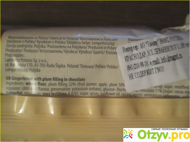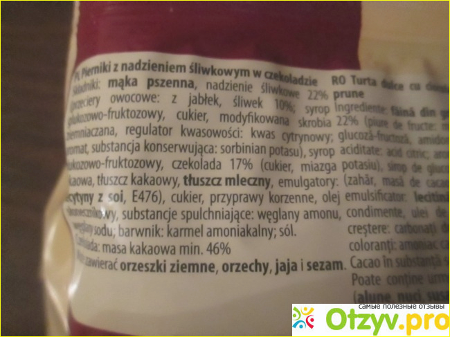 Состав на польском языке. Интересно, почему нельзя сделать понатуральней? Или снизит срок годности внешний вид пряника будет попроще?