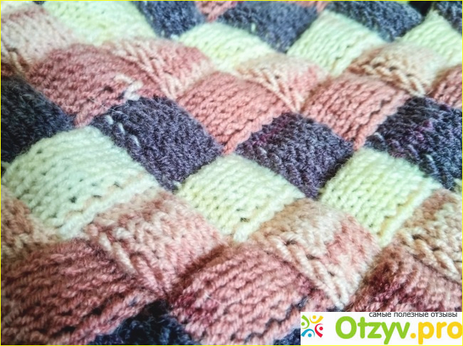 Пряжа идеальна для творчества. Из нее получается интересное полотно с переходами цветов. Длинна каждого цветного участка нити разная. Например, в моей пряже самый короткий цветной участок нити кремовый. При вязании на полотне у меня получается тонкая кремовая полоска.