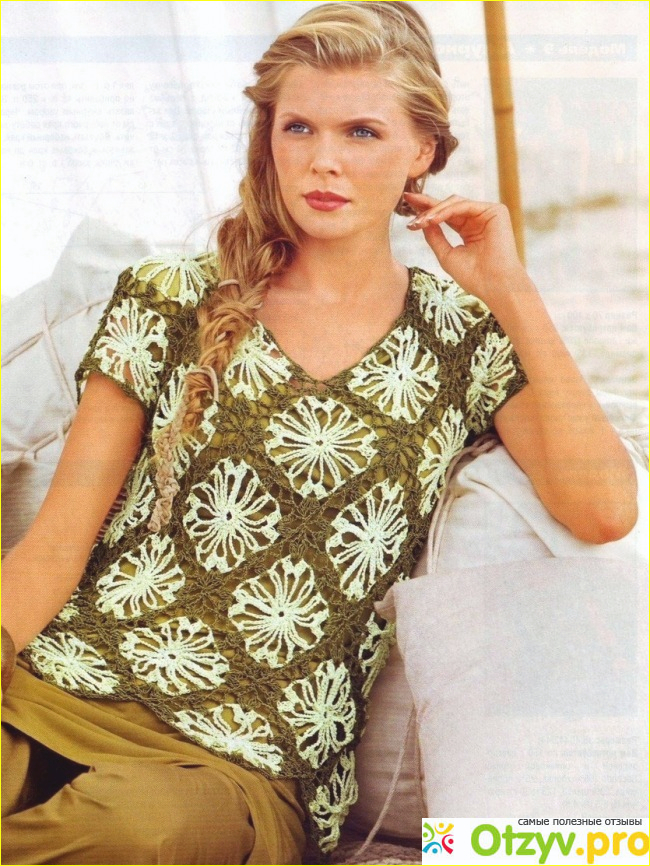 Вторым моим изделием крючком был вот такой пуловер (я люблю вязать для своей дочери, фигура у нее точеная и все вещи сидят очень красиво), но она забраковала изделие - не любит в дырочку, мне пришлось подарить своей племянице - та просто в восторге.