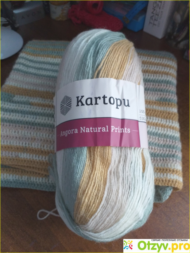 Моточек пряжи Kartopu Angora Natural Prints весит 100 грамм, длина нити = 530 м.