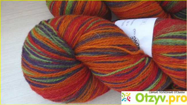 И так, берем тазик, наливаем тепленькую водичку, добавляем средство для мытья посуды и туда кладем пряжу. Ах, да, перед тем как класть, ее необходимо перевязать в трех местах туго ниткой, чтобы она не спутывалась. Не много обмакните, пожмите и вытаскивайте. Воду слейте, и залейте новую и теперь туда добавьте шампунь для волос любой, и снова намочите пряжу. После вылейте воду, снова налейте и теперь уже хорошенько ее прополощите. После этого необходимо положить пряжу в стиральную машинку и отжать на 800 оборотах. Как только машинка закончит отжим, вытащите пряжу и положите сушиться, подальше от отопительных приборов. Как только она высохнет ее необходимо скатать в клубочек. И все. Теперь можно вязать из нее, что пожелаете. Очень красиво из нее получается шали, шарфы. Цвет очень плавно переходит из одного в другой. В пасме особо не видно красоты, а вот в полученной вещи цвет шикарный. Так первая моя работа из этой пряжи была сделана в виде шали, шаль получилась очень воздушной, но в тоже время в ней очень тепло, конечно ведь там 100% шерсть.