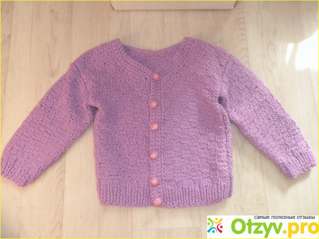 Для детских вещей лучше пряжи не найти. Я вязала быстро, легко, за один день почти доделала спинку и перед. На второй день кофточка была готова. Ни одна пряжа так быстро не вяжется, кроме этой. Кофточка абсолютно не колючая, шерсть в составе не ощущается, только катышки её выдают.