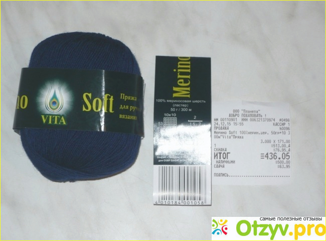 Выбор пряжи она предоставила мне. Цвет желаемый - темно синий. В магазине оказалась такого цвета только пряжа Мерино софт от Вита.