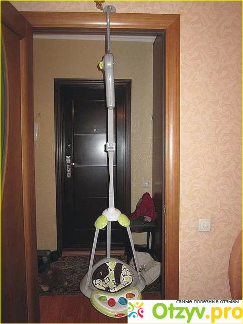 К прыгункам прилагалась инструкции и гарантийный талон. Но все было настолько понятно, что инструкция совершенно не понадобилась. Данные прыгунки разработаны для деток в возрасте 4-6 месяцев. Основная их цель, по задумке разработчиков, не только упростить маме жизнь, а научить малыша прыгать, ориентироваться в пространстве, развивают моторику ножек Вашего малыша. Очень большое преимущество данных прыгунков в том, что у них большой пластиковый каркас и достаточно удобные подлокотники, что обеспечивает безопасность ребенка и защищает при любых контактах. Очень удобное и добротное крепление- прыгунки крепятся в дверных проемах при помощи специального механизма. Высоту также Вы можете спокойно отрегулировать, чтобы ножки касались или даже не касались пола. С легкостью Вы также сможете развернуть ребенка лицом или спиной, так как само сиденье поворотное. Неудобно, конечно, когда вытаскиваешь ребенка, оно немного подымается за дочкой, но я отшучиваюсь :"что не хочешь отпускать мою Крошку?". Это нельзя отнести к недостатку, так как тянется за ребенком через раз и то все это зависит, как ты сама возьмешь с прыгунков своего малыша. Очень забавляют дочку разноцветные кнопки, которые еще и музыкальные. Но Вы знаете, мы на некоторое время отсоединили проводки, так как у дочки очень сильно стали течь слюни. Поэтому у нас сейчас музыкальный модуль служит просто подставкой. Ребенок слушает музыку теперь в телевизоре и пытается под музыку еще и подпрыгивать. Это так мило и смешно одновременно.