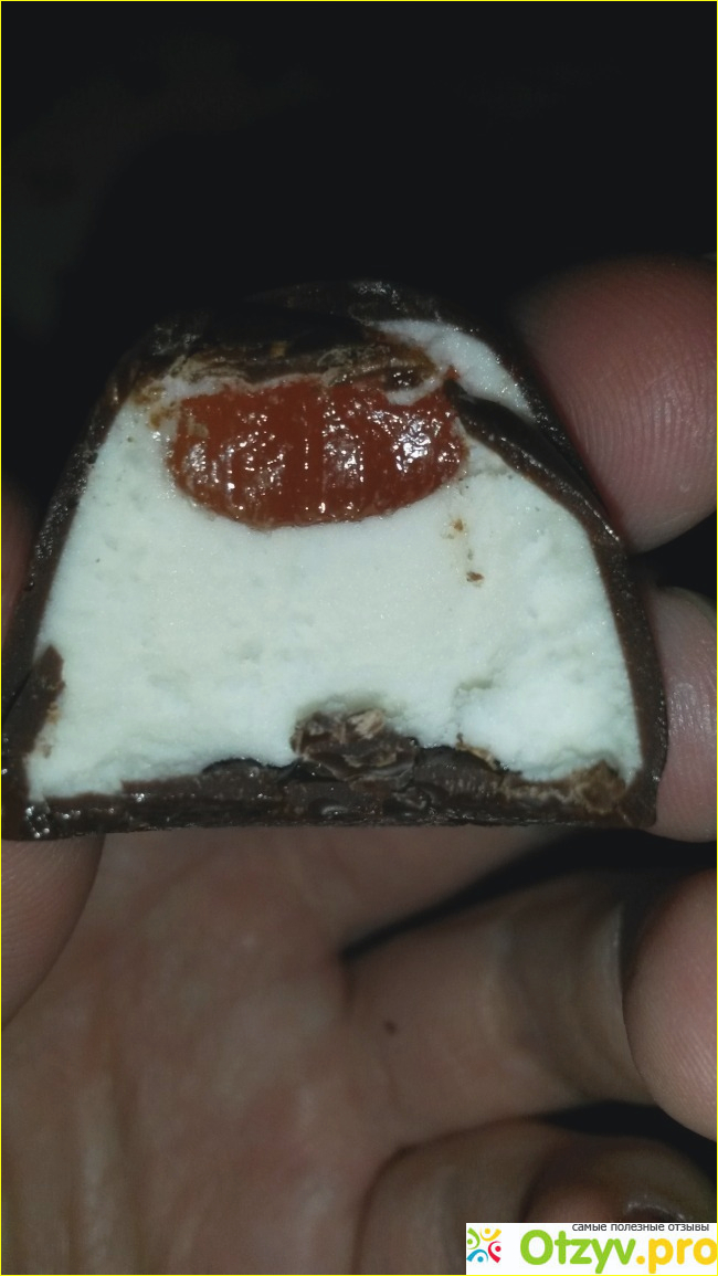 Чтобы было лучше понятно что же из себя представляет эта самая конфетка со вкусом клубники со сливками, прилагаю фотографию "внутренности" конфетки.