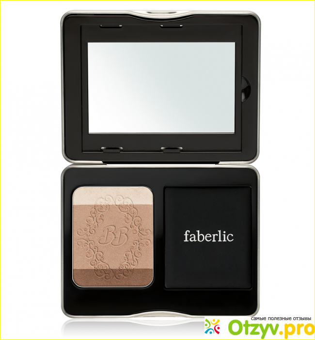 Продукт 3 в 1: пудра стойкого пигмента и легкого покрытия, бронзер для красивого загара и коррекции прорисовки мелких деталей, хайлайтер. Интересно оформленная металлическая коробочка, но не достаточно плотно закрывается. Зато отличное большое зеркало, качественно сделанная пуховка, продукт не сыпется, плотно прессованный, мелкого помола.