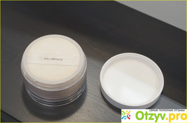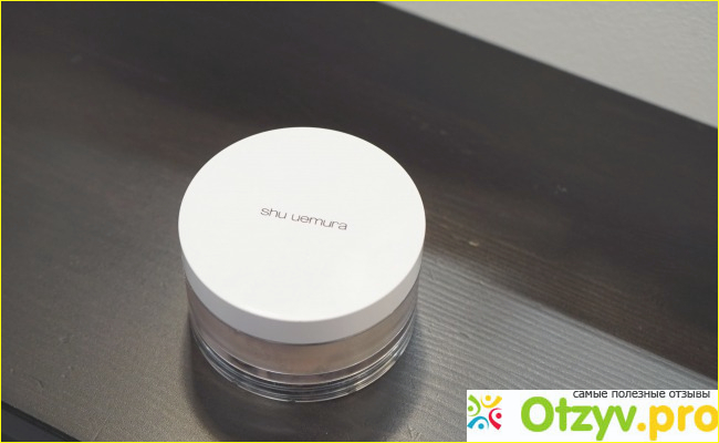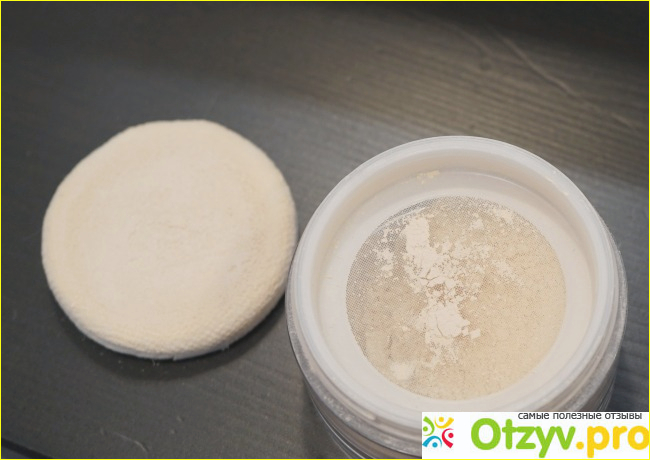 Сначала хочу рассказать о баночке, в которой находится пудра. Она прозрачная с белой крышкой. Выглядит довольно просто и строго.