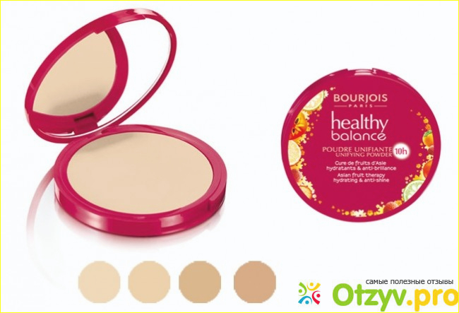 Пудра Healthy Balance Bourjois придает кожному покрову естественный сияющий оттенок, то есть сам цвет получается максимально родным, средство полностью адаптируется под естественные тона, так что даже и не скажешь того, что на лице есть какая-то корректирующая косметика.