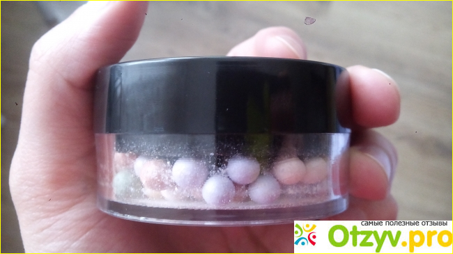 Стойкость держания на лице по заявлению производителя до 16 часов. В небольшой прозрачной баночке, через которую можно разглядеть шарики.