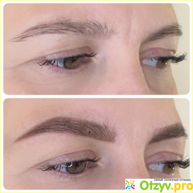 Брови выглядят очень естественно . Нет четко выбитых границ как у обычного татуажа.