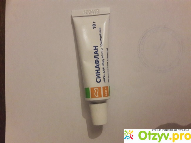 Кончиками пальцев нанести мазь синафлан очень тонким слоем.
