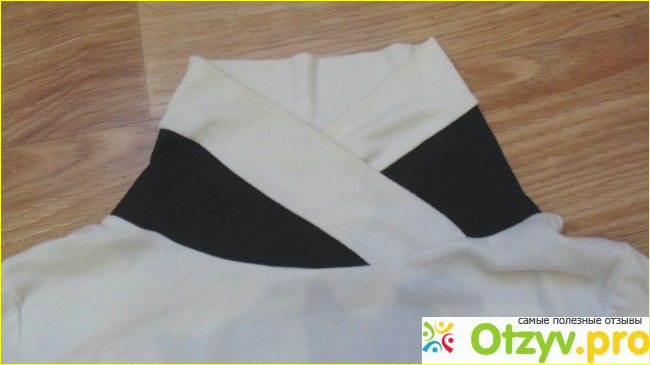 Кофточка довольно короткая. Горловина совершенно не так лежит, как на фото, а просто обвивается вокруг шеи. Не держит форму совершенно.
