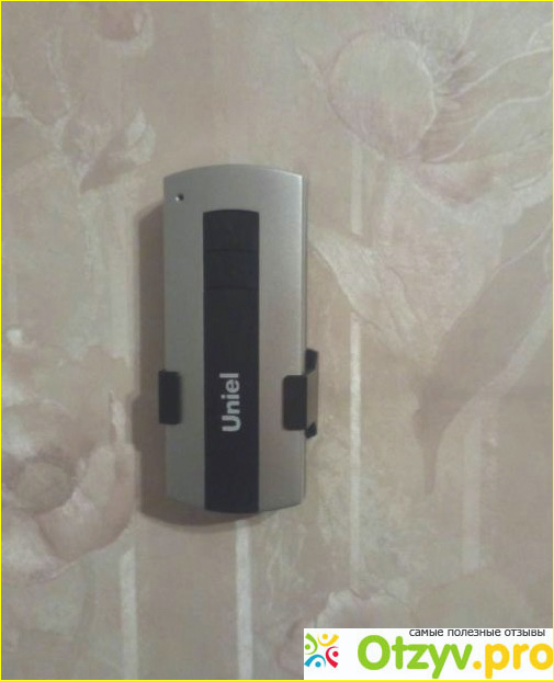 Прожили мы с этим чудом два года, после чего решили заменить. Ответственность за покупку взял на себя муж. Выбор остановили на пульте марки Uniel. Внешне смотрится привлекательно, цвет черный и серебристый металлик. В комплекте имеется настенный крепеж, можно его прикрутить или приклеить на двух сторонний скотч. Ширина 2 см, длина 4,5 см, высота 9 см. Производитель Китай. Стоимость одного пульта 1200 тыс. рублей.