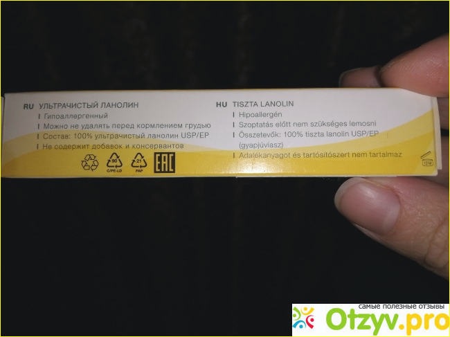 Пурелан имеет очень удобную упаковку. Сам тюбик мягкий и мазь из него с легкостью выдавливается. Крышечка откидная и потерять ее просто невозможно. По своей текстуре мазь напоминает вазилин. При нанесении на кожу препарат медленно тает и впитывается. Никакого резкого запаха нет. Есть какой то легкий аромат, даже не знаю с чем его сравнить, но он едва заметен и меня совсем не раздражает. Упаковка очень компактная. Тюбик имеет объем всего 35 мл. Это позволяет брать его в дорогу и использовать при необходимости. Я смазывала грудь после каждого кормления и у меня не возникало никаких проблем. Сейчас мы ожидаем второго малыша и я точно знаю, что пурелан обязательно будет в моей "Сумке в роддом".