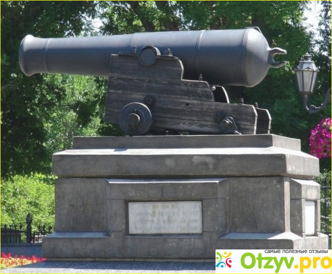 В самом основании Приморского бульвара (что в городе Одессе), у здания Горсовета расположена пушка. Неподалеку – статуя А. С.