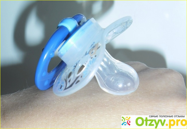 Эта соска идет ортодонтичной формы, я старшему точно такую же по форме брала, только не припомню фирму, вроде как "Курносики", остальные у него были обычные, я их за 50 рублей в аптеке взяла. А у младшего сына соска-пустышка идет от фирмы Nuk, в аптеке я выбирала между несколькими вариантами, в итоге победила силиконовая пустышка синего цвета от "Нук".