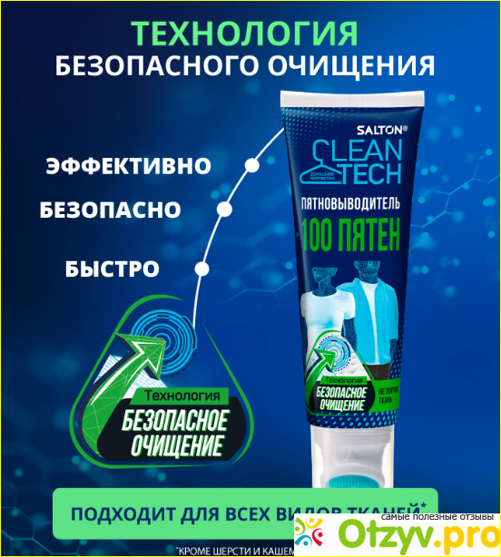 Всем привет! Я домохозяйка на опыте, очень люблю готовить, и экспериментировать с новыми рецептами. Готовка не всегда про удовольствие, часто после приготовления блюд одежда вся измазана, и приходится выводить пятна с одежды. К себе в помощники я купила несколько средств, сегодня о пятновыводителе Salton CleanTech 100 пятен.