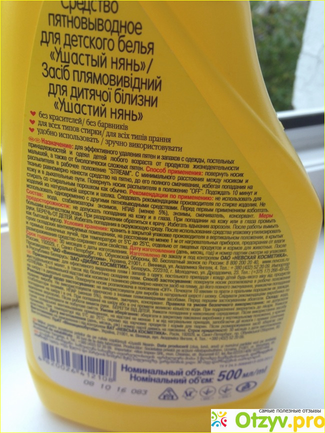 Мне нравится то что это спрей, куда уж проще -набрызгала и всё, средство работает. Мечтательница я, или как говорит моя подруга - такая большая, а в сказки веришь. Сегодня угостила малыша малиной и как будто завернула ребенка основательно в полотенце, а когда начала умывать... мама дорогая, на нежно голубом человечке полно розовых пятен. Я то знаю что у меня есть чудо - средство сразу же переодела малыша и побрызгала на свежие пятна, им от силы было 10 минут. Это я по максимуму время назвала. Где то через пол часа я решила постирать вещичку внука и вывесить сушиться. А пятна то есть, ни куда не делись, стали темного цвета, не фиолетовые, не синие, но где то рядом. Я еще два раза брызгала на пятна из баллончика и считаю что ерунда полная. Если со свежими пятнами средство не справилось, то застарелые пятна, вчерашние на пример, не чего и пытаться вывести.