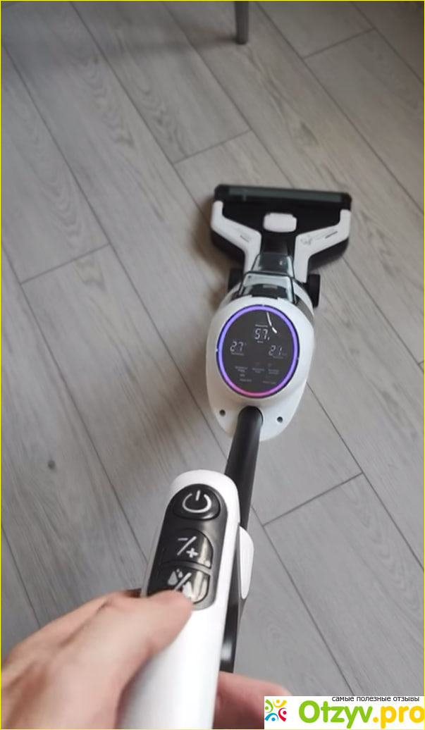 Заряда аккумулятора хватает на уборку квартиры из трех комнат. В режиме эко Clever & Clean HV-AQ800 работет 40 минут, в режиме турбо - до 20 минут. Он оснащен сенсорным дисплеем, на который выводится вся необходимая информация по управлению и температура и влажность окружающей среды.