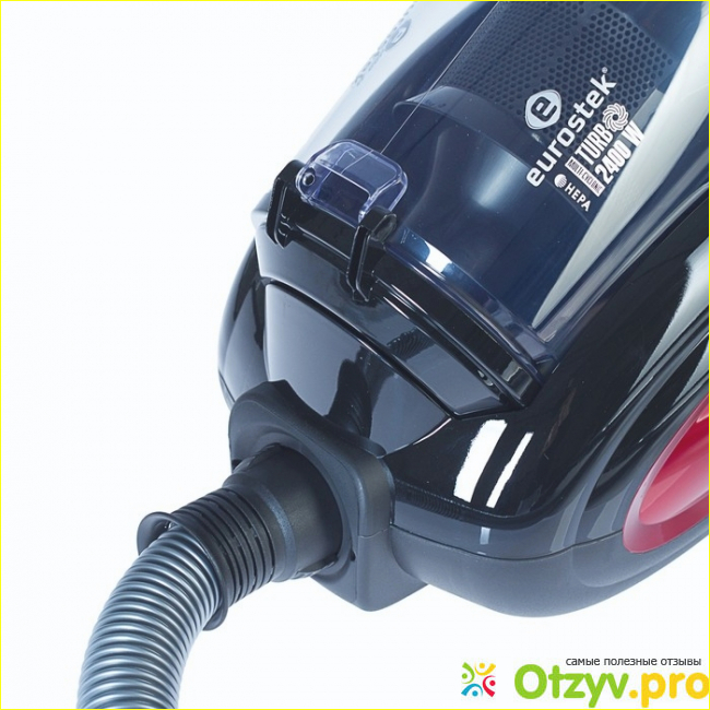 Можно регулировать мощность всасывания и это также очень важно, причем электрическая мощность пылесоса составляет 2400 Вт, а на всасывание приходится 420 Вт. Очень удобная телескопическая трубка, выполненная из металла. После каждой уборки мы также ее промываем, иначе грязь в ней начинает тухнуть и вонь невыносимая стоит, как будто крыса сдохла. Как и в большинстве моделей здесь предусмотрена автоматическая смотка шнура, длина которого составляет 3,2 метра. Шнура нам вполне хватает для уборки в комнате. Сам же пылесос весит примерно 6 килограмм. В комплектации также идут две насадки: для пола/ковра, а также щелевая для уборки мебели. Благодаря большой мощности всасывания мы чистим нашу мебель: там порой можно встретить шкурки от семечек или крошки от хлеба. Все это без труда в себя засасывает пылесос Eurostek EVC-4502, который предназначен для сухой уборки помещений. Пылесос красно-черного цвета, внешний вид просто потрясающий. Не могу не отметить и качественные колесики, благодаря которым достигается удобное перемещение бытовой техники по квартире. Вынуть циклонный фильтр не составит труда, достаточно всего лишь нажать на ручку, после чего все содержимое контейнера удалить и промыть водой. Чистку других элементов пылесоса: телескопическая трубка, насадки, а также фильтра лучше промывать после каждой уборки. Как только засасывать пылесос стал слабее, это говорит о том, что нужно либо освободить контейнер от грязи или же произвести чистку пылесоса.