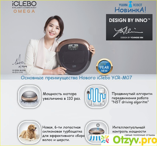 Робот-пылесос Iclebo Omega это новинка 2016 года. Он очень красивый на вид, также хочется отметить, что он довольно таки компактный и не занимает много места. Мне сказали что это обновленная модель и теперь в нем все улучшено. Пылесос действительно отлично всасывает пыль и всю грязь с пола. Пылесос обладает специальными боковыми щетками, способными тщательно вычищать углы. Пылесос может убрать пыль не только с ковра, но и с линолеума и ламинат. Это очень удобно, теперь полы можно мыть намного реже. Работает пылесос практически бесшумно, что очень меня радует, так как проводить уборку теперь можно в то время, пока вся семья спит и никого не разбудить. В пылесосе отличная навигационная система. К положительным качества также относится то, что у пылесоса отличный аккумулятор. Его абсолютно легко хватает на 2-3 уборки. Хочется отметить, что у меня живет кот, он короткошерстный, но линяет постоянно, такая шерсть даже хуже длинной, раз в неделю я обязательно запускаю пылесос и он легко убирает шерсть с ковра. Вначале мне было интересно наблюдать за уборкой пылесоса, так как мне хотелось быть уверенной что все убрано, сейчас же я полностью доверяю пылесосу и он работает самостоятельно. Он сразу же отлично запомнил квартиру и уборка проходит быстро и не напряжно. После уборки пылесос стоит вычищать, но сейчас я научилась делать это максимально быстро.